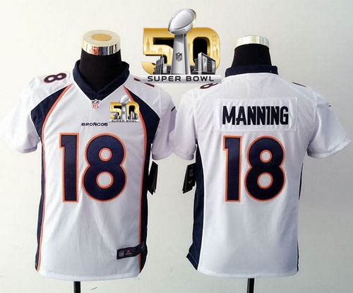 Nike Broncos #18 Peyton Manning White Super Bowl 50 Youth Stitched NFL Elite Jersey