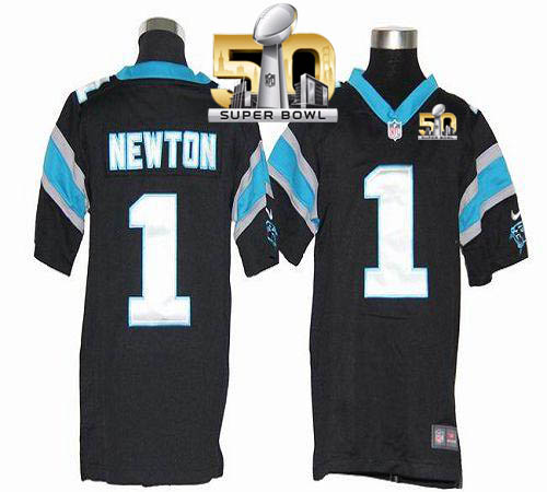 Nike Panthers #1 Cam Newton Black Team Color Super Bowl 50 Youth Stitched NFL Elite Jersey