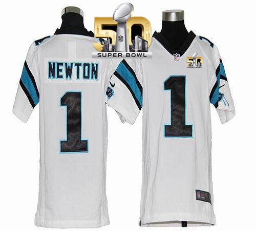 Nike Panthers #1 Cam Newton White Super Bowl 50 Youth Stitched NFL Elite Jersey