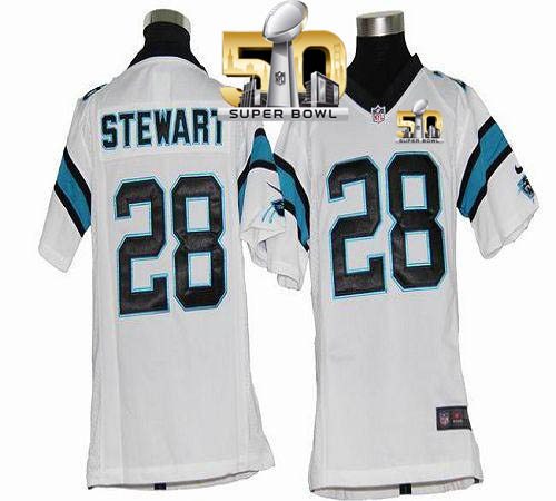 Nike Panthers #28 Jonathan Stewart White Super Bowl 50 Youth Stitched NFL Elite Jersey