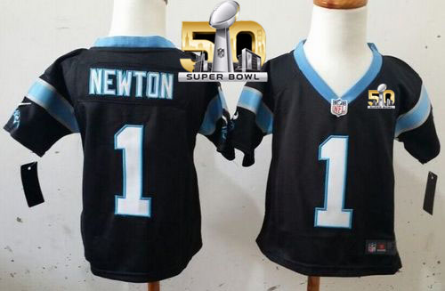 Toddler Nike Panthers #1 Cam Newton Black Team Color Super Bowl 50 Stitched NFL Elite Jersey
