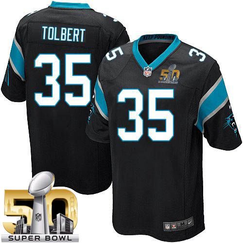 Nike Panthers #35 Mike Tolbert Black Team Color Super Bowl 50 Youth Stitched NFL Elite Jersey