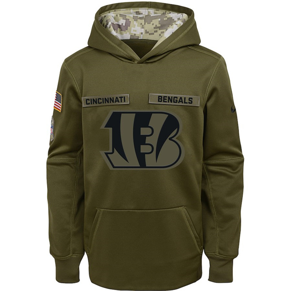 Youth Cincinnati Bengals Olive Salute to Service Pullover Performance NFL Hoodie