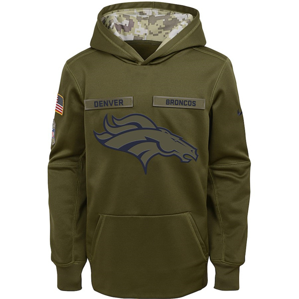 Youth Denver Broncos Olive Salute to Service Pullover Performance NFL Hoodie