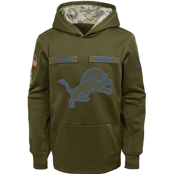 Youth Detroit Lions Olive Salute to Service Pullover Performance NFL Hoodie