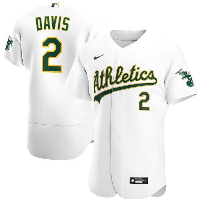 Men's Oakland Athletics #2 Khris Davis White Flex Base MLB Stitched Jersey