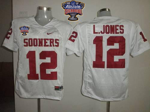 Sooners #12 Landy Jones White 2014 Sugar Bowl Patch Stitched NCAA Jersey