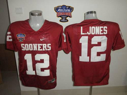 Sooners #12 Landy Jones Red 2014 Sugar Bowl Patch Stitched NCAA Jersey