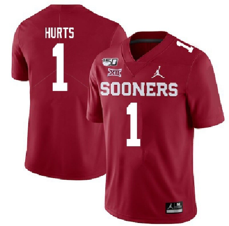 Men's Oklahoma Sooners #1 Jalen Hurts Red 150th Season Stitched NCAA Jersey