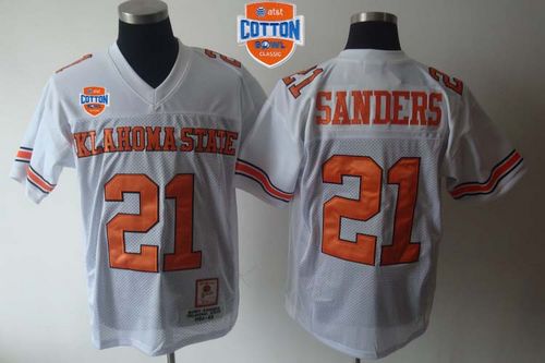 Cowboys #21 Barry Sanders White Throwback Stitched NCAA Jersey