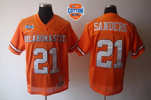 Cowboys #21 Barry Sanders Orange Throwback Stitched NCAA Jersey