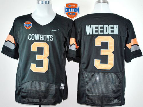 Cowboys #3 Brandon Weeden Black Pro Combat 2014 Cotton Bowl Patch Stitched NCAA Jersey