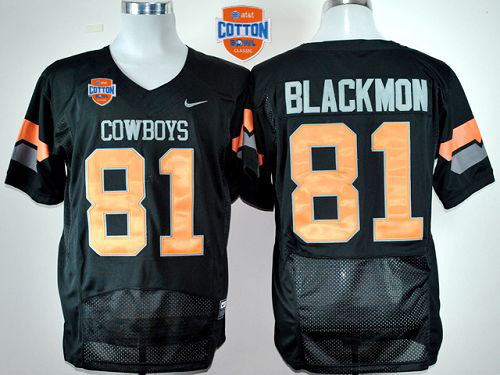 Cowboys #81 Justin Blackmon Black Pro Combat 2014 Cotton Bowl Patch Stitched NCAA Jersey