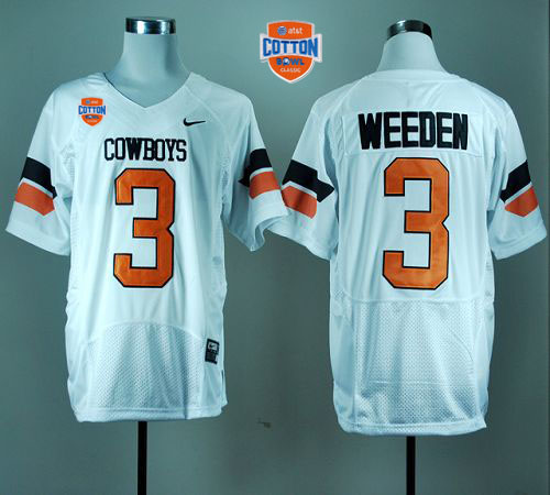 Cowboys #3 Brandon Weeden White Pro Combat 2014 Cotton Bowl Patch Stitched NCAA Jersey