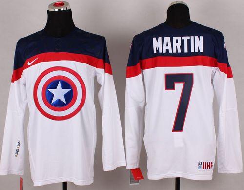 Olympic Team USA #7 Paul Martin White Captain America Fashion Stitched NHL Jersey