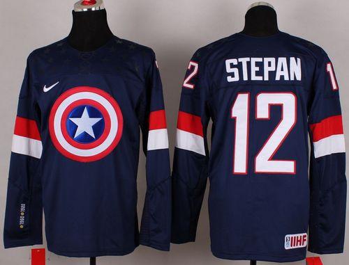 Olympic Team USA #12 Derek Stepan Navy Blue Captain America Fashion Stitched NHL Jersey