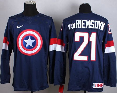 Olympic Team USA #21 James van Riemsdyk Navy Blue Captain America Fashion Stitched NHL Jersey