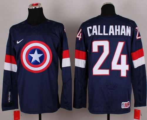 Olympic Team USA #24 Ryan Callahan Navy Blue Captain America Fashion Stitched NHL Jersey