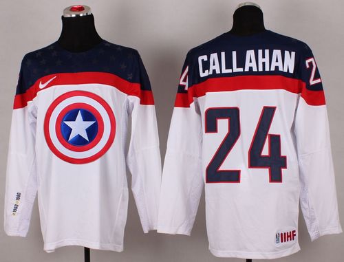 Olympic Team USA #24 Ryan Callahan White Captain America Fashion Stitched NHL Jersey