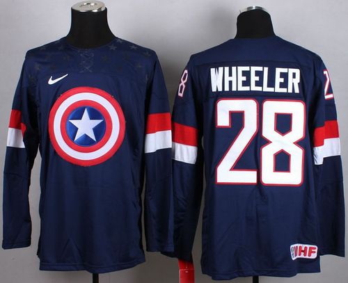 Olympic Team USA #28 Blake Wheeler Navy Blue Captain America Fashion Stitched NHL Jersey