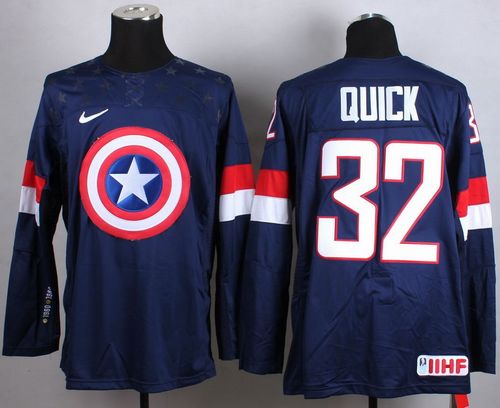 Olympic Team USA #32 Jonathan Quick Navy Blue Captain America Fashion Stitched NHL Jersey