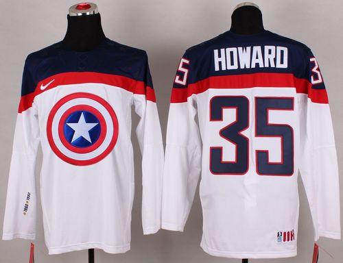 Olympic Team USA #35 Jimmy Howard White Captain America Fashion Stitched NHL Jersey