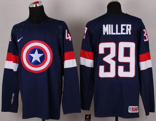 Olympic Team USA #39 Ryan Miller Navy Blue Captain America Fashion Stitched NHL Jersey