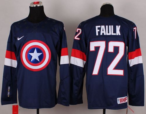 Olympic Team USA #72 Justin Faulk Navy Blue Captain America Fashion Stitched NHL Jersey