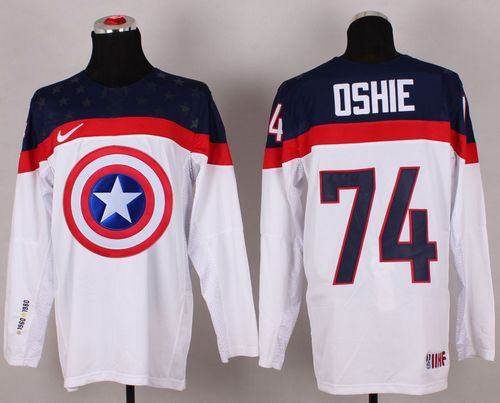Olympic Team USA #74 T. J. Oshie White Captain America Fashion Stitched NHL Jersey