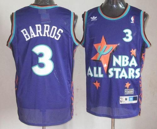 76ers #3 Dana Barros Purple 1995 All Star Throwback Stitched NBA Jersey