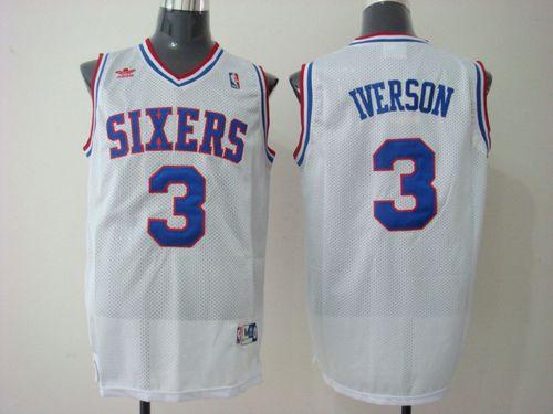 76ers #3 Allen Iverson White Stitched Throwback NBA Jersey