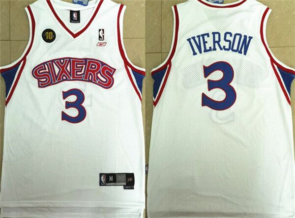 Men's Philadelphia 76ers #3 Allen Iverson White 10th Anniversary Stitched NBA Jersey