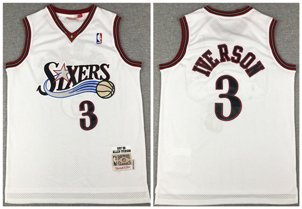 Men's Philadelphia 76ers #3 Allen Iverson Mitchell & Ness White 1997/98 Classics Stitched Jersey
