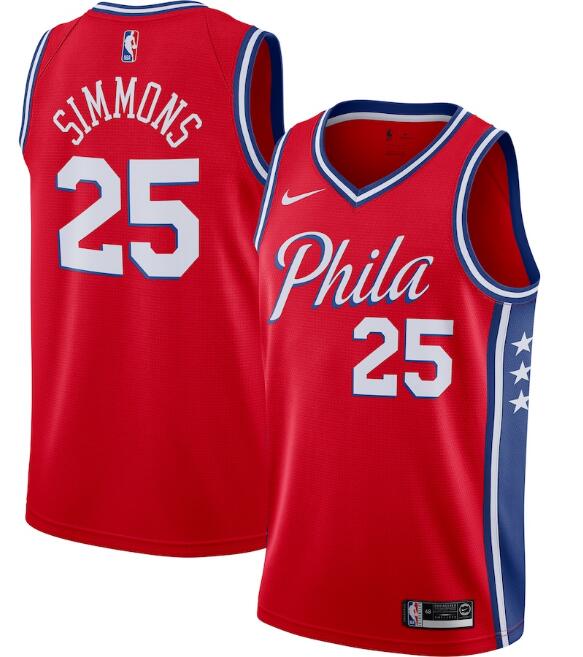 Men's Philadelphia 76ers #25 Ben Simmons Red Statement Edition Stitched Swingman Jersey