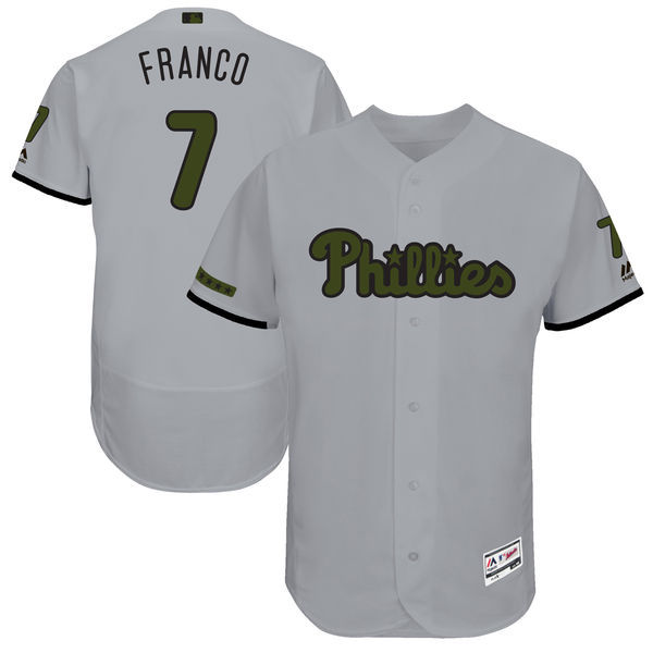 Men's Philadelphia Phillies #7 Maikel Franco Majestic Gray 2017 Memorial Day Authentic Collection Flex Base Player Stitched MLB Jersey