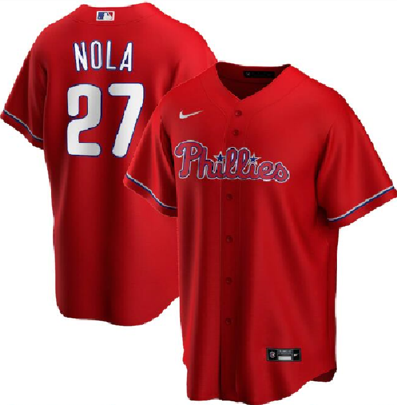 Men's Philadelphia Phillies #27 Aaron Nola Red Cool Base Stitched Jersey