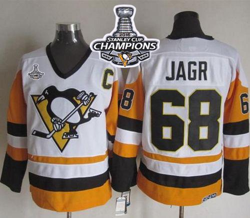 Penguins #68 Jaromir Jagr White/Black CCM Throwback 2016 Stanley Cup Champions Stitched NHL Jersey