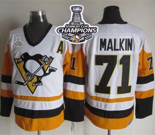 Penguins #71 Evgeni Malkin White/Black CCM Throwback 2016 Stanley Cup Champions Stitched NHL Jersey