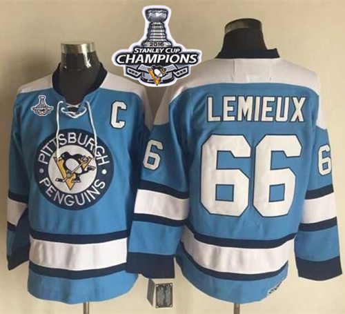 Penguins #66 Mario Lemieux Blue Alternate CCM Throwback 2016 Stanley Cup Champions Stitched NHL Jersey