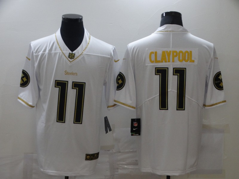 Men's Pittsburgh Steelers #11 Chase Claypool 2020 White Gold Limited Stitched Jersey