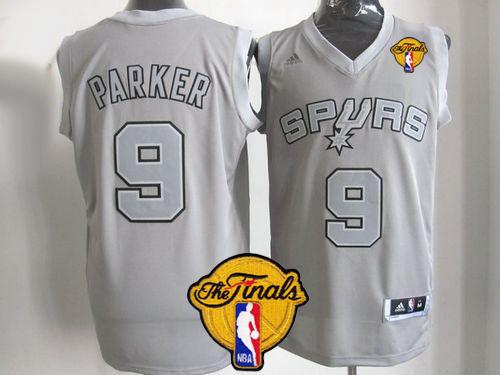 Spurs #9 Tony Parker Grey Alternate Finals Patch Stitched NBA Jersey