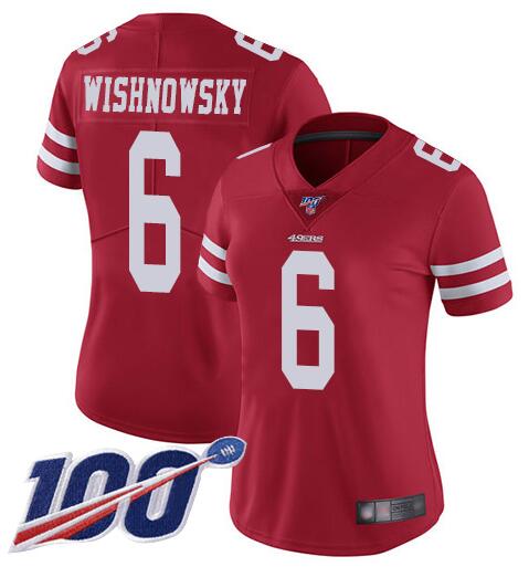 Women's NFL San Francisco 49ers #6 Mitch Wishnowsky 2019 Red 100th season Vapor Untouchable Limited Stitched Jersey(Run Small)