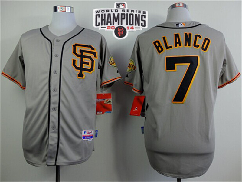 Giants #7 Gregor Blanco Grey Road 2 Cool Base W/2014 World Series Champions Patch Stitched MLB Jersey