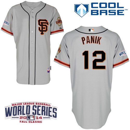 Giants #12 Joe Panik Grey Road 2 Cool Base W/2014 World Series Patch Stitched MLB Jersey