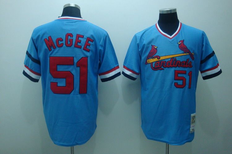 Mitchell and Ness Cardinals #51 Willie McGee Stitched Blue Throwback MLB Jersey