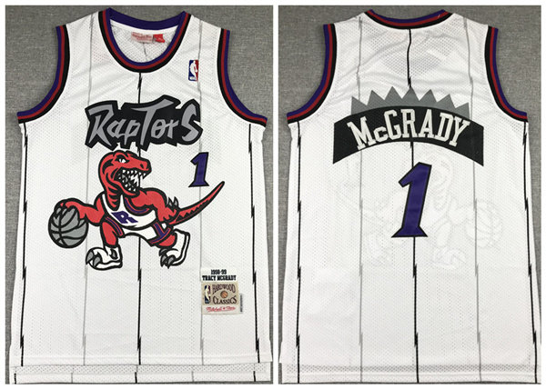 Men's Toronto Raptors #1 Tracy Mcgrady White Throwback Stitched Jersey