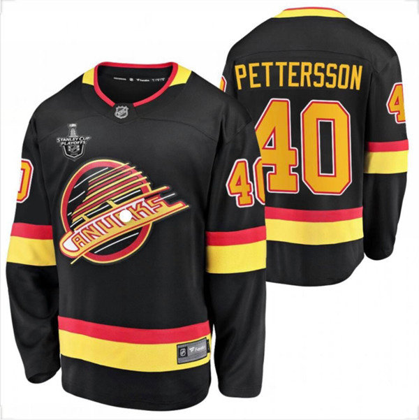 Men's Vancouver Canucks #40 Elias Pettersson Black With Patch Stitched NHL Jersey