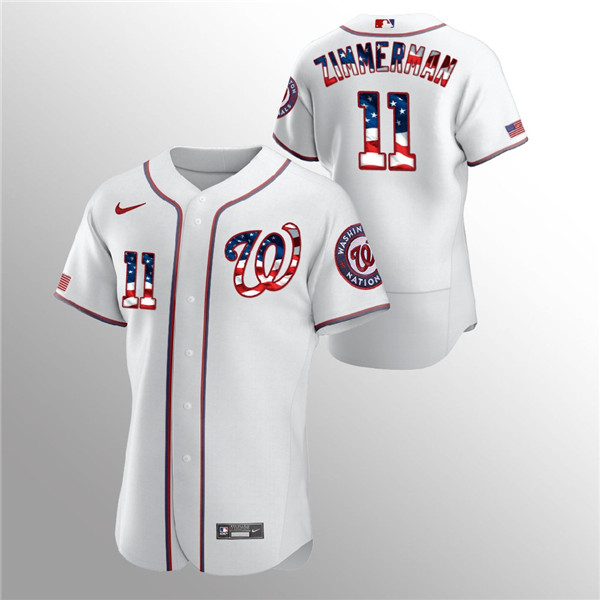 Men's Washington Nationals #11 Ryan Zimmerman White 2020 Stars & Stripes Flex Base Stitched Jersey
