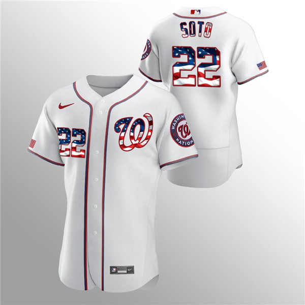 Men's Washington Nationals #22 Juan Soto White 2020 Stars & Stripes Flex Base Stitched Jersey