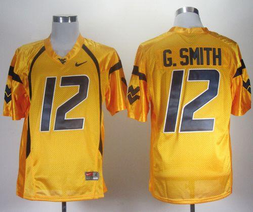 Mountaineers #12 Geno Smith Gold Stitched NCAA Jersey